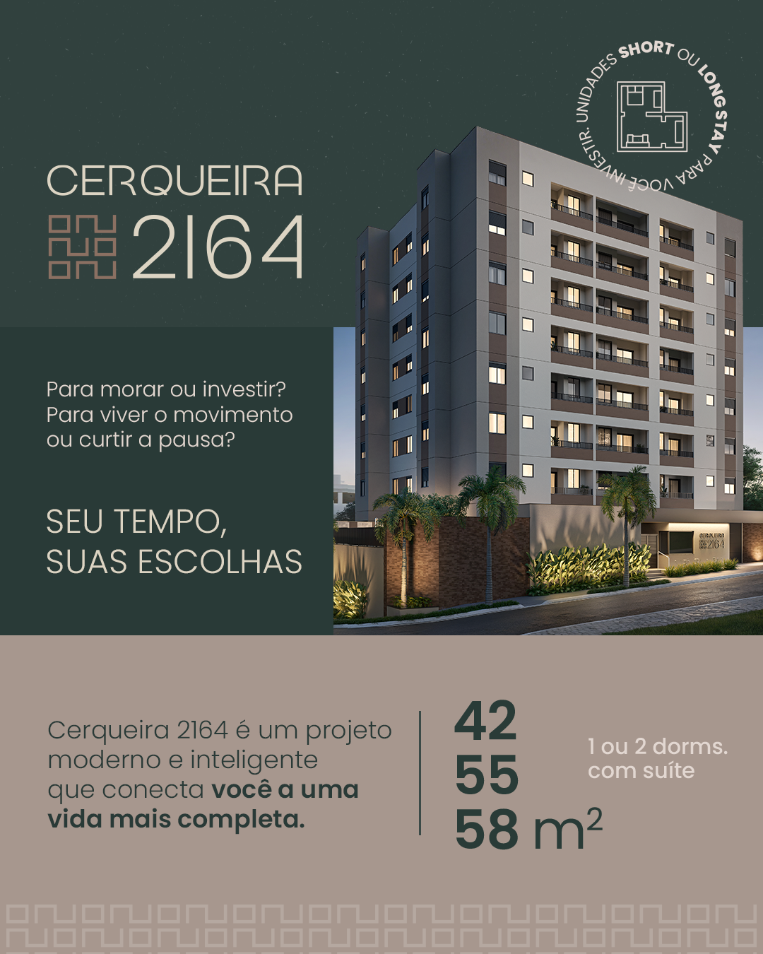 CERQUEIRA CESAR EMPREENDIMENTOS IMOBILIÁRIOS SPE LTDA. – CNPJ 58.103.828/0001-55. MEMORIAL DE INCORPORAÇÃO REGISTRADO JUNTO AO 01º OFICIAL DE REGISTRO DE IMÓVEIS DE RIBEIRÃO PRETO-SP, EM 26 DE NOVEMBRO DE 2025, SOB Nº R.5 DA MATRÍCULA 180.720. TODAS AS IMAGENS E PERSPECTIVAS CONTIDAS NESTE MATERIAL SÃO MERAMENTE ILUSTRATIVAS, PODENDO SOFRER ALTERAÇÕES, INCLUSIVE QUANTO À FORMA, COR, TEXTURA E TAMANHO. AS UNIDADES E ÁREAS COMUNS SERÃO ENTREGUES CONFORME MEMORIAL DESCRITIVO CONSTANTE DO MEMORIAL DE INCORPORAÇÃO, QUE PREVALECERÁ EM CASO DE CONFLITO COM QUALQUER OUTRO MATERIAL OU INFORMAÇÃO RELATIVA AO EMPREENDIMENTO. A DECORAÇÃO, EQUIPAMENTOS E MOBILIÁRIOS DAS UNIDADES SÃO APENAS SUGESTÕES, NÃO FAZENDO PARTE DAS OBRIGAÇÕES DE ENTREGA DA INCORPORADORA. A DECORAÇÃO E MOBILIÁRIO DAS ÁREAS COMUNS, PREVISTOS NAS IMAGENS DO BOOK, PODERÃO SER MODIFICADOS PELA INCORPORADORA, NÃO SENDO ENTREGUES OS UTENSÍLIOS, ADORNOS E ACESSÓRIOS EVENTUALMENTE PREVISTOS NAS IMAGENS, O PAISAGISMO APRESENTADO NAS PERSPECTIVAS É UMA SUGESTÃO E APRESENTA PLANTAS EM PORTE ADULTO, A SER ATINGIDO APÓS A ENTREGA DO EMPREENDIMENTO. CP VENDAS – INTERMEDIAÇÃO E ADMINISTRAÇÃO DE IMÓVEIS LTDA – CRECI 44154-J. PERPLAN INTERMEDIAÇÃO DE VENDAS DE IMÓVEIS LTDA-CRECI 27878-J